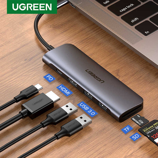 UGREEN 4K 6-in-1 USB C Hub 2 * USB 3.0 + USB-C + 4K HDMI Port + SD & TF Card Slot for Tablet PC Apple Samsung Huawei Phones - PH