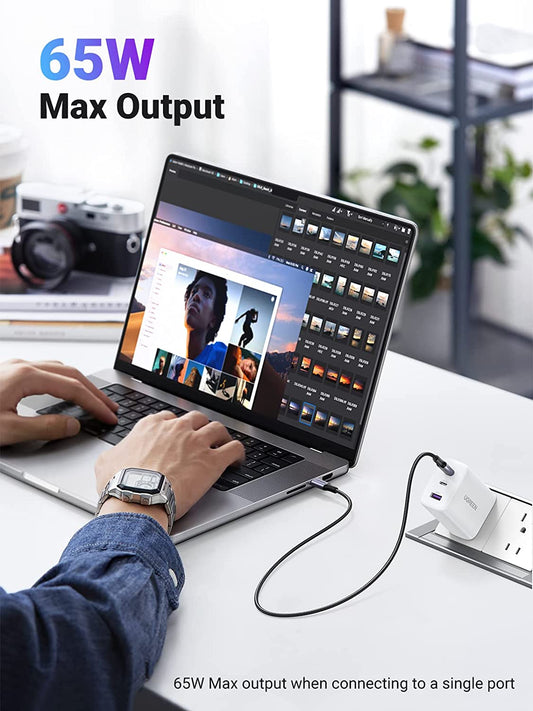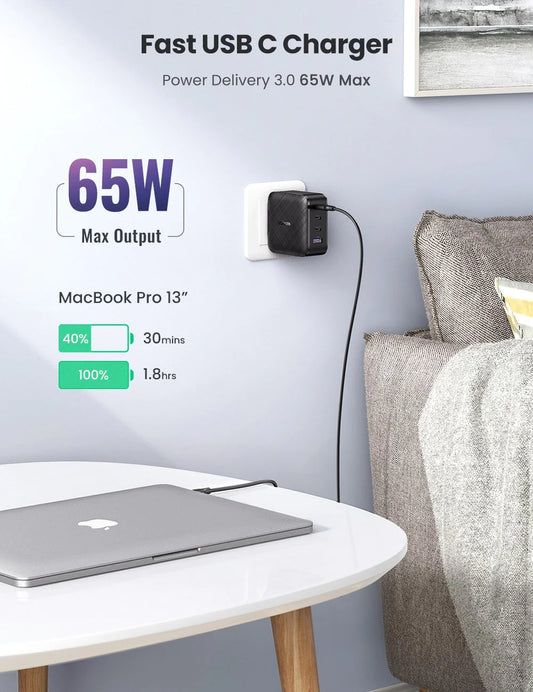 UGREEN 65W 4 Port 3C1A PD GaN Fast Charging Charger 3 USB-C (Type-C) ports and USB-A for Apple Android Laptop Charging
