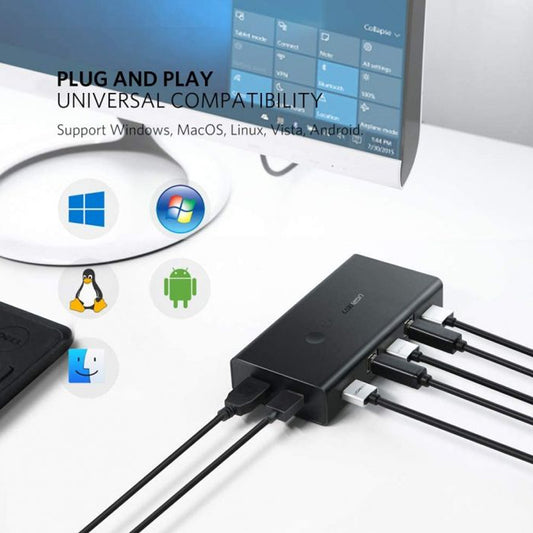 UGREEN KVM Switch 2 in 1 Out 4K HDMI Switcher Box and Extended 4 Ports USB Hub Manual Sharing Box with USB Cables for Computer PC Laptop Desktop Monitor TV Printer Keyboard Mouse