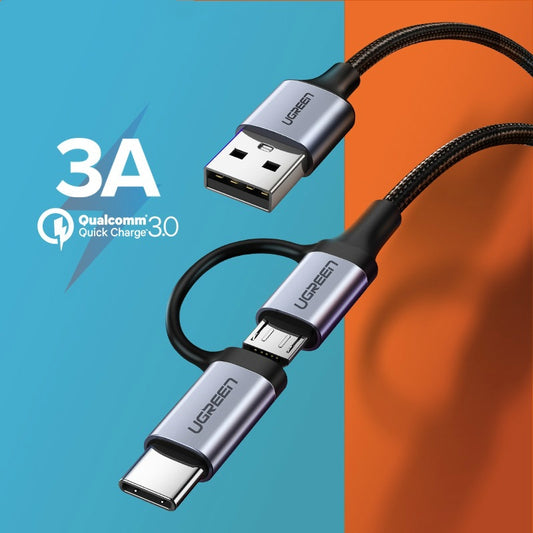 UGREEN USB A to Micro USB + USB Type C Data and Charging Cable for Android Samsung Huawei
