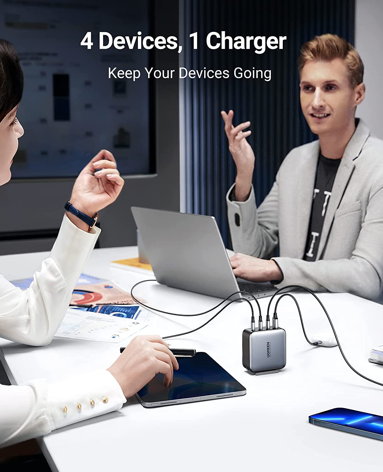 Simultaneously charge 4 devices at full speed and save up to 1 hour of charging time with UGREEN 100W USB C charger.