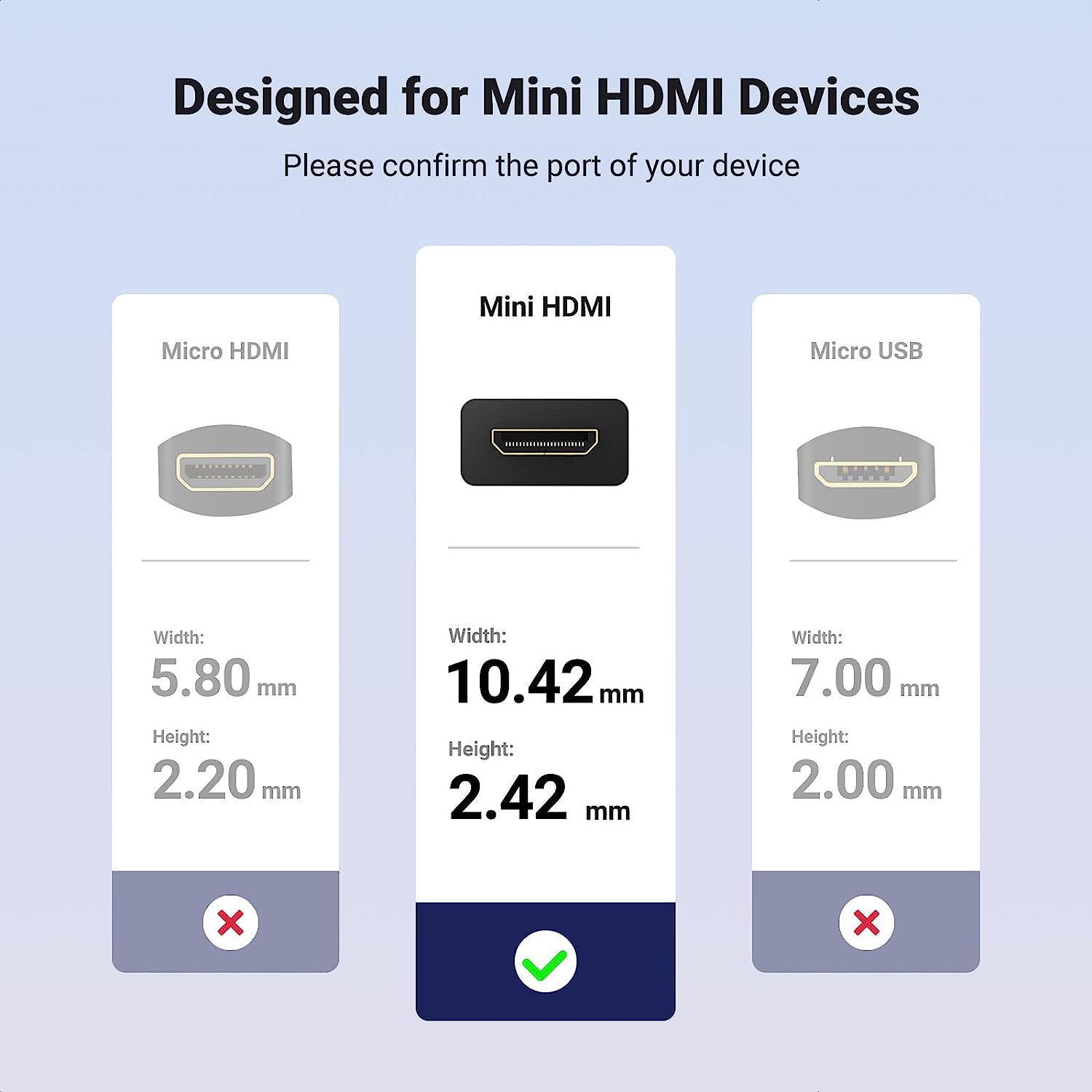 - 【Mini HDMI to HDMI Adapter】UGREEN HDMI to mini HDMI adapter converter easily converts mini HDMI 2.0 port on your laptop, camcorder, camera, or even some tablet to a standard HDMI Type A interface on TV, monitor, or projector. Compact and Portable. NOTE: Please make sure your device has a Mini HDMI port.