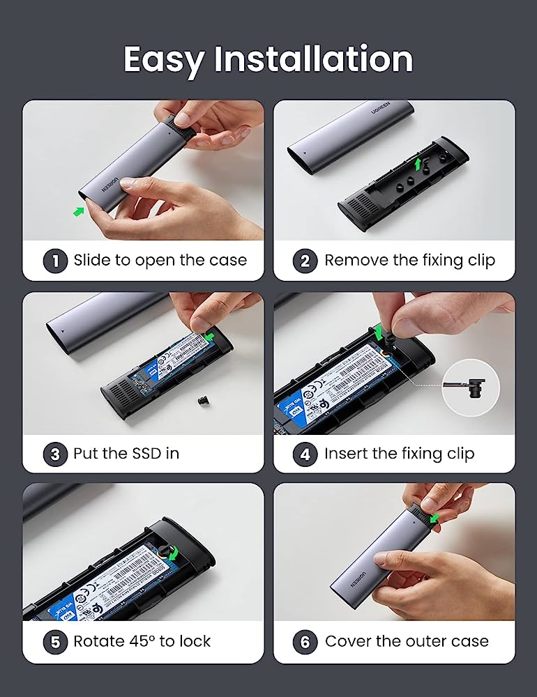 5Gbps - UGREEN M.2 SSD Enclosure is specially designed for B-Key & M+B Key SATA NGFF based SSD, including the size of 2280/2260/2242/2230 up to 2TB.