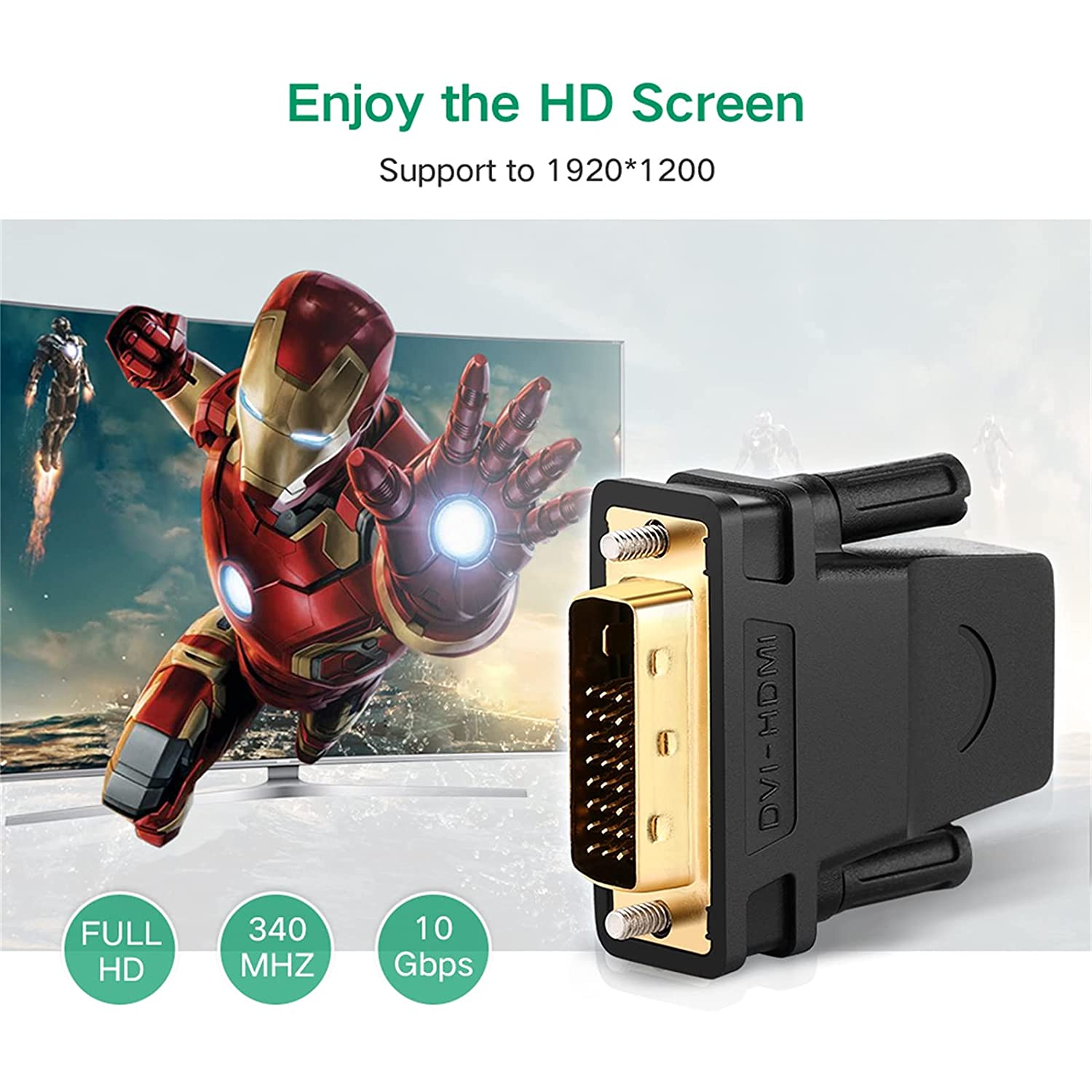 UGREEN DVI to HDMI Adapter, DVI-D 24+1Male to HDMI Female High Speed Adapter Converter Gold Plated Support 1080P for HDTV, Plasma, DVD, Projector, Computer