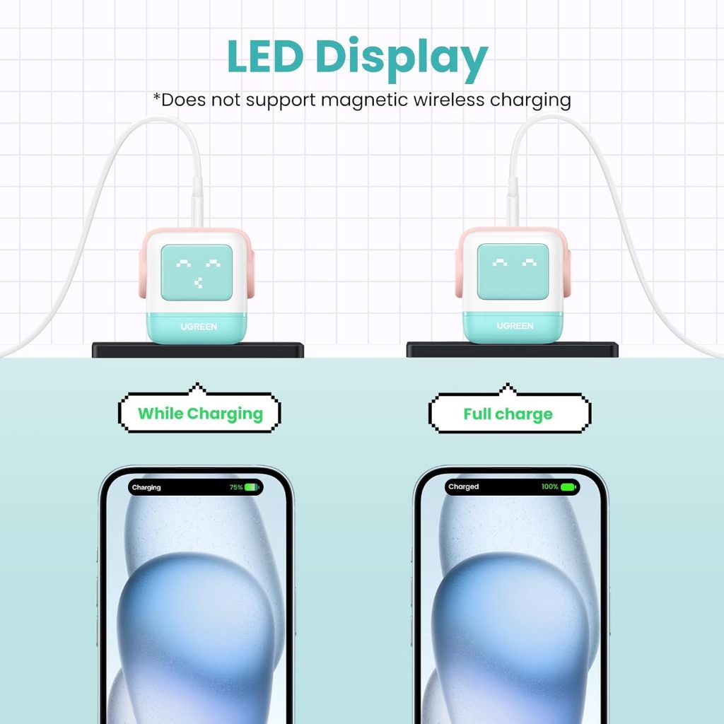 - LED Display: The face of the little robot is an LED display that can display different expressions (different expressions correspond to different charging states), making charging more than just waiting, please note that the LED display will only light up when plugged into the power strip