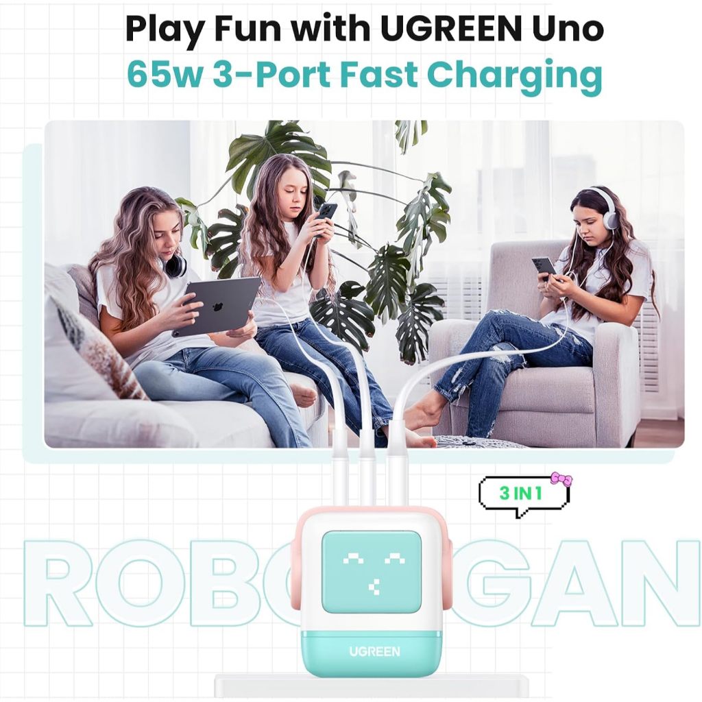 UGREEN Nexode RG 65W 3-Port GaN Fast Charger Pink Blue- PH