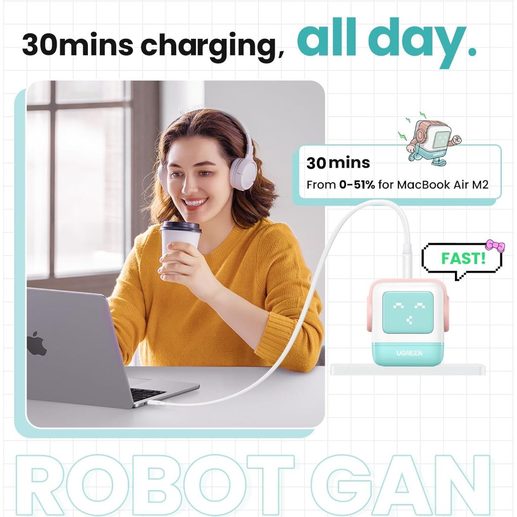 - Powerful 65W Charging: For your MacBook Air M2 from 0 to 51% in just 30 min with single USB C port, please note that this product is Not a power bank