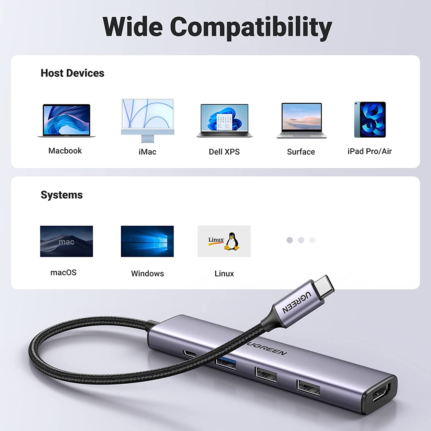 100W Pass-Through Charging: Equipped with a 100W USB-C PD port, UGREEN USB C Hub will offer fast, efficient charging for your laptop at home, in the office or on the go.