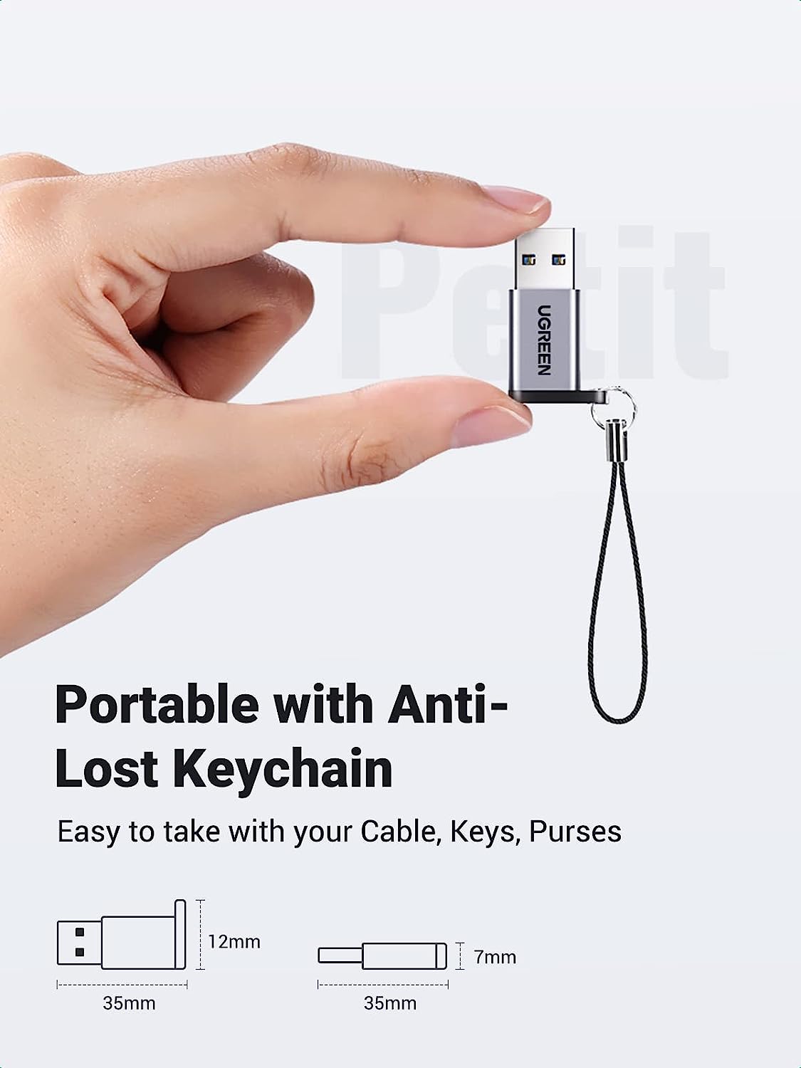 - Durable & Mini-sized: UGREEN USB C female to USB male adapter is equipped with an aluminum alloy case and built-in 56KΩ resistance to protect the internal circuit structure, ensuring safe and fast charging with excellent performance. The size of the type c charger converter is 35mm×12mm, which takes up very little space and is easy to carry around.