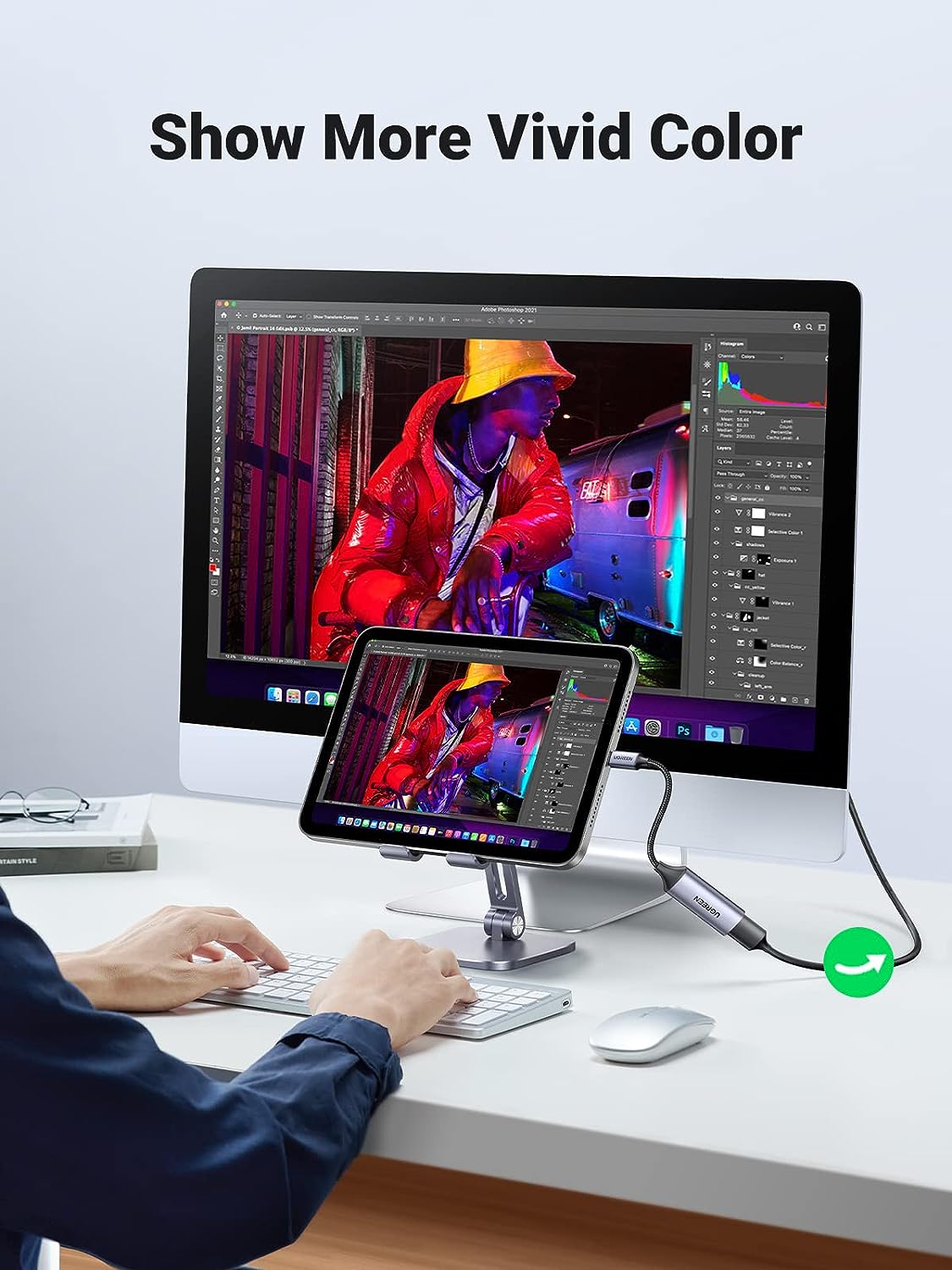Life-Like HDR Video & Audio: The premium USB C HDMI 2.0 Adapter supports 4K@60Hz high-definition resolution and High Dynamic Range (HDR), letting you get vibrant visuals on a larger screen. Advanced VL100 & PS176 chipsets significantly ensure stable signal transmission and avoid picture delay or flickering.