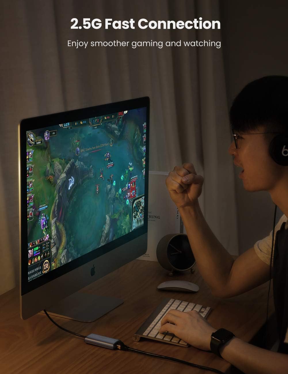 2500Mbps Gigabit Ethernet Adapter: UGREEN USB C to Ethernet Adapter is future-proof and prepares a 2.5Gbps(2500Mbps)ultra-fast Gigabit Ethernet port for Type C/Thunderbolt 3 laptops. The USB Type C to 2.5G Gigabit Ethernet Cable is 2.5x faster than 1Gbps Gigabit Ethernet, and backward compatible with 10/100/1000Mbps, automotically match your Ethernet Speed. The blazing USB C Network Adapter is meant for high-efficiency pursers, discerning gamers, PC enthusiasts, overclockers, live streamers, vi