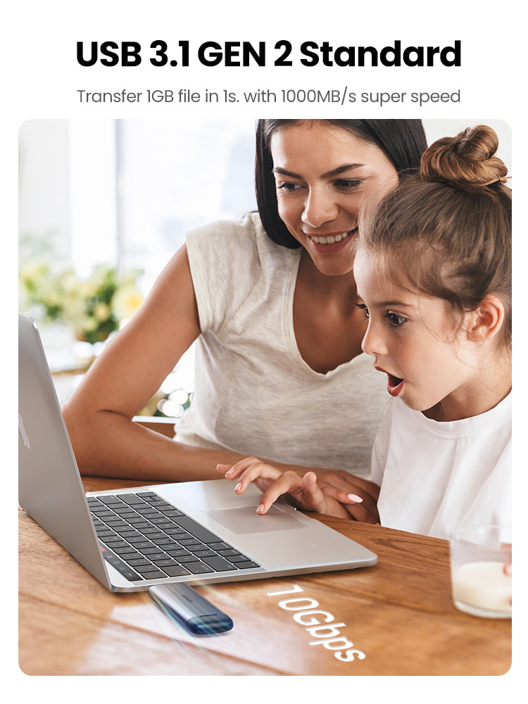 Engineered with USB 3.1 Type C Gen2 interface(10Gbps), and delivers max data transmission rate up to 10Gbps.