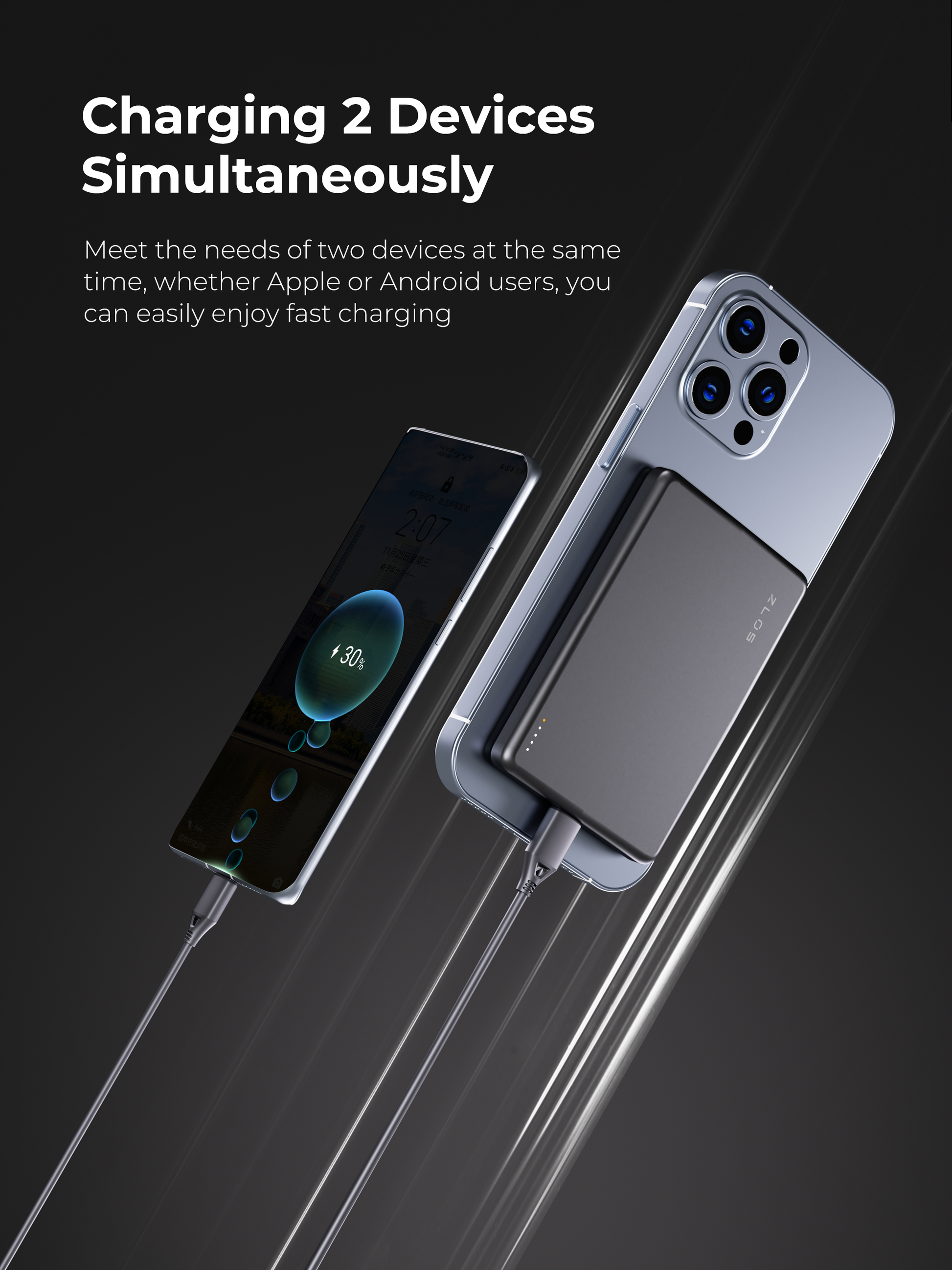- Charging 2 Devices Simultaneously: Meet the needs of two devices at the same time, whether Apple or Android users, you can easily enjoy fast charging.